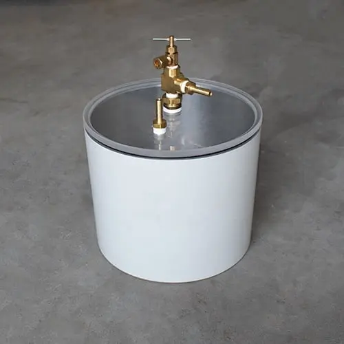 Vacuum pycnometer for a rice test setup. Our pycnometers are machined from high-grade aluminum and are slightly tapered to improve their strength.
